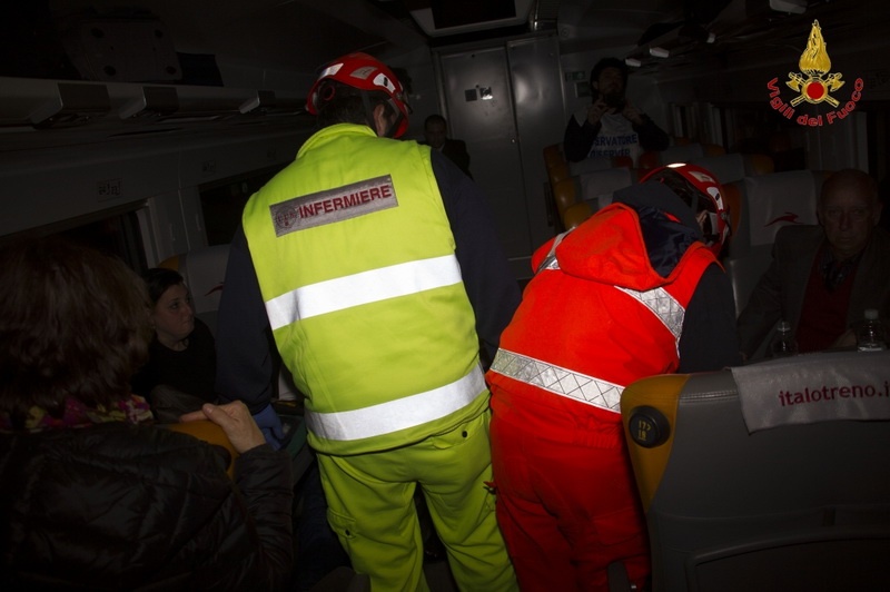 Nel frattempo il personale del 118 ha curato gli aspetti sanitari del soccorso, mentre la Polizia Ferroviaria operava l'arresto del rapinatore ed il personale di Protezione Civile assisteva i passeggeri. Interessati anche i Carabinieri per il controllo della viabilità in corrispondenza delle zone interessate dal movimento dei mezzi di soccorso.