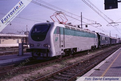In queste immagini vediamo l'E.402.101 ripresa all'interno del DL di Napoli S.to e presso la stazione di Roma Tiburtina durante uno dei viaggi prova.