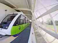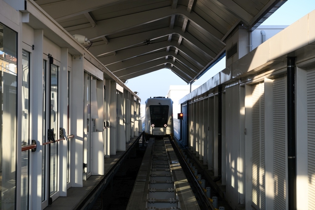 L'infrastruttura appare leggera, priva di sovrastrutture sospese poiché i veicoli sono alimentati dalla rotaia. La via di corsa e la passerella di sicurezza sono racchiuse da pannelli di lamiera stirata che conferiscono compattezza e trasparenza alla via di corsa. Il parapetto fa anche da supporto al "nastro" di pannelli fotovoltaici. Il ponte di scavalco della tangenziale ha una luce libera di 90 metri ed è caratterizzato da due grandi portali disegnati dall'architetto Iosa Ghini.