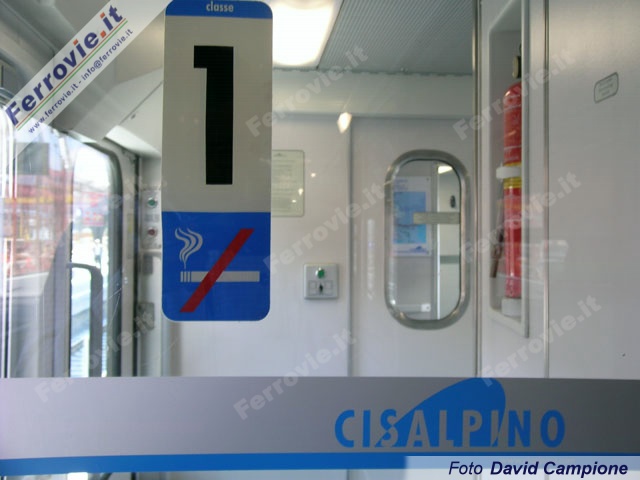 In entrambi le classi è comunque evidente l'identità del treno: poggiatesta in colore bianco personalizzati con il logo Cisalpino in celeste, adesivi applicati sulle porte di accesso all'ambiente viaggiatori ed ancora le cartine con i collegamenti Cisalpino esposte in ogni vestibolo.