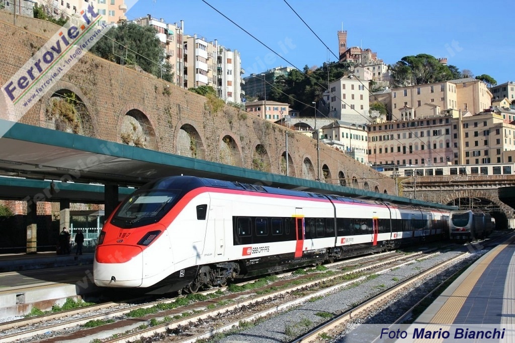 GENOVA - Come da programma, con il cambio orario del 13 dicembre l'elettrotreno svizzero RABe 501 "Giruno" ha iniziato il servizio passeggeri su destinazioni italiane oltre Milano. Le prove propedeutiche a questa espansione commerciale si sono svolte a inizio novembre nel Nord Italia (vedi News ferroviarie del 06/11/2020).