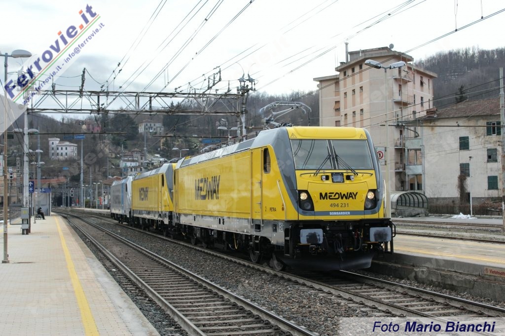 VADO LIGURE (Savona) - Sono uscite nella mattinata del 27 gennaio dallo stabilimento Alstom (ex Bombardier) di Vado Ligure tre nuove locomotive TRAXX DC3 del gruppo E 494.