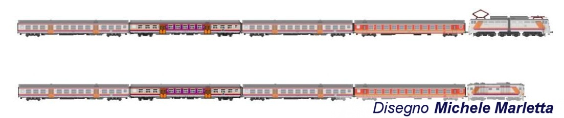 La composizione non prevede l'utilizzo della carrozza pilota in modo da facilitare il passaggio da un plastico all'altro con diverso sistema di trazione, elettrica o termica.