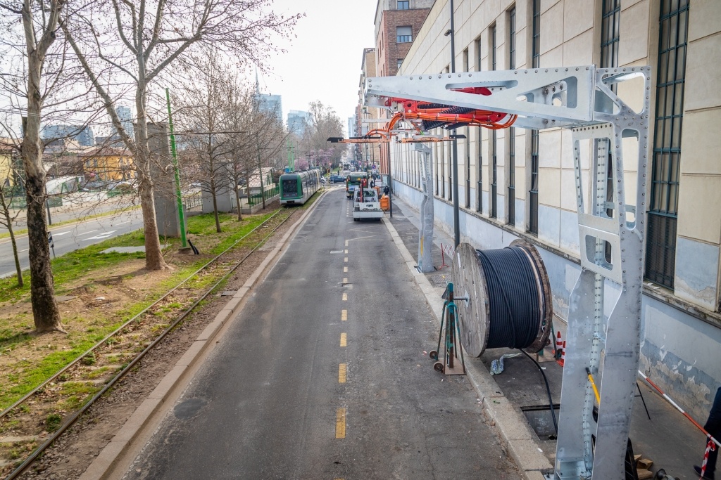 In questi giorni sono in fase di installazione i primi charger hi-tech in Viale Zara. Sono postazioni evolute ad alto contenuto tecnologico che, attraverso un comando Wi-Fi, attivano il pantografo che carica in pochi minuti i bus elettrici. Nelle prossime settimane i primi e-bus a testare la nuova tecnologia saranno quelli delle linee 51, 60 e 82.