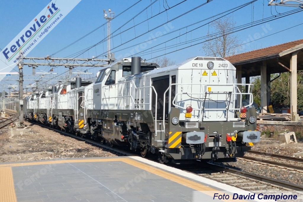 RIVALTA SCRIVIA (Alessandria) - Dopo l'arrivo in Italia della prima unità, la DE 18 "Aurora" (vedi News ferroviarie del 26/07/2019), comincia a prendere consistenza la produzione delle nuove locomotive Diesel-elettriche di Vossloh Locomotives destinate al mercato ferroviario nazionale. Al momento in cui scriviamo sono otto (inclusa la testa di serie) le unità che hanno raggiunto il nostro Paese. Nella prima metà di marzo ne sono arrivate tre, seguite il giorno 24 dello stesso mese da ulteriori quattro macchine, le DE 18 2421, 2422, 2423 e 2424.