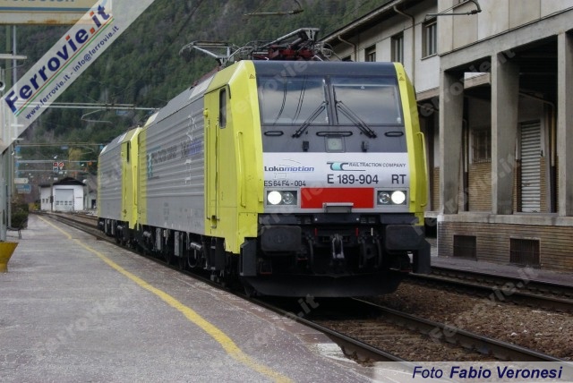 Due moderne locomotive E.189 di Rail Traction Company, di rimando dal Brennero transitano per Fortezza. (Foto Fabio Veronesi, 19 marzo 2005)