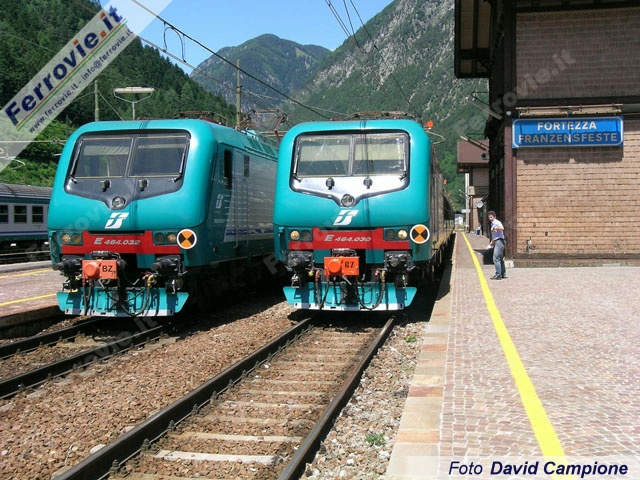 Il volto odierno del trasporto regionale a Fortezza, dove le E.464 hanno il dominio quasi incontrastato. (Foto David Campione, 25 giugno 2004)