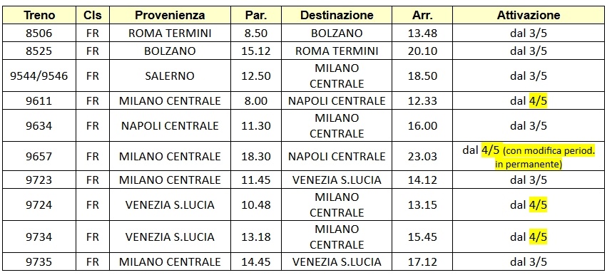ROMA - In vista del ritorno in zona gialla di diverse regioni italiane dal prossimo 26 aprile, che tra l'altro consentirà la mobilità tra le stesse, viene leggermente incrementata l'offerta Frecciarossa sulle linee AV Dorsale e Trasversale.