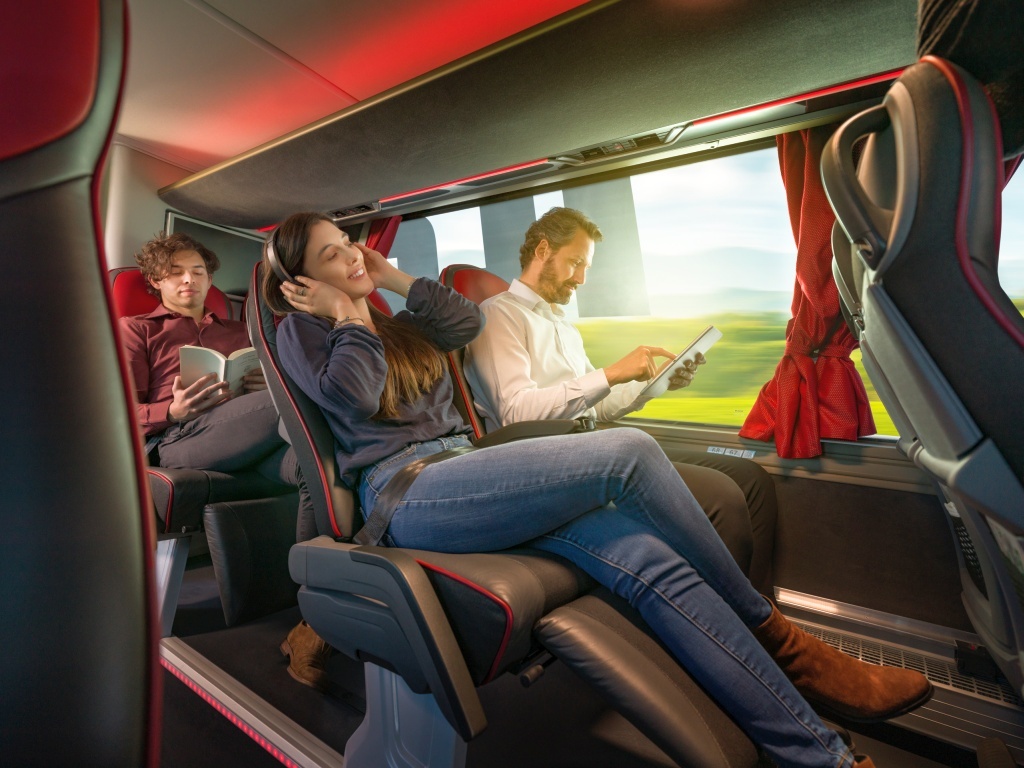 Un nuovo modo di viaggiare su gomma, grazie alla qualità, sicurezza e affidabilità degli autobus MAN, Gruppo Volkswagen. La flotta - completamente nuova e acquistata tramite un'operazione finanziaria interamente gestita da Intesa Sanpaolo attraverso la Divisione IMI Corporate & Investment Banking - sarà composta dal MAN Lion's Coach, vincitore del premio "Coach of the Year 2020", e dal Neoplan Skyliner, da sempre considerato l'eccellenza di settore per i viaggi su due piani. Comodità, comfort e qualità contraddistinguono l'intera flotta. Itabus soddisfa con i suoi nuovi mezzi tutte le esigenze dei viaggiatori: a partire dall'accesso Wi-Fi, basato su connettività ultrabroadband 4/5G, fornito in collaborazione con TIM, che abiliterà su tutte le tratte i servizi internet attraverso una soluzione di rete innovativa, funzionale, efficiente e sicura; ai distributori automatici per snack e bevande, dalle toilette presenti a bordo di tutti i mezzi alle sedute spaziose, tavolini al posto, luci a LED e prese USB e di corrente per ogni poltrona, tutto il necessario per permettere ai passeggeri di rilassarsi e al contempo ottimizzare il tempo di viaggio. Caratteristica unica per il trasporto su gomma nel bus bipiano è il doppio ambiente di viaggio: Comfort+ e Top, sinonimo di extra spazio con sedute interamente reclinabili e aree tavolino per le famiglie.