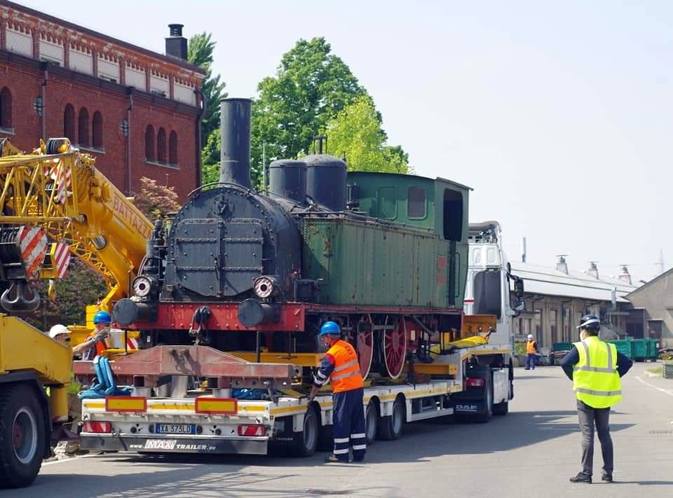 Pochi giorni fa, con l'ausilio di due gru e un rimorchio e l'intervento del personale di FerrovieNord e Trenord, l'antica vaporiera è stata rimossa dal tronchino, su cui si trovava da 36 anni, e riportata sui binari al coperto dentro ai capannoni del deposito di Novate.