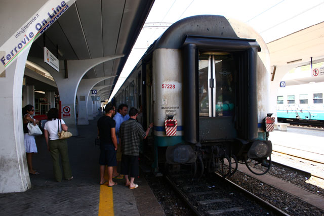 Decido di lasciare Bari alle 11.18 con l'Intercity straordinario 32178 per Milano Centrale, non prima di averne verificato al binario la composizione ond'evitare di ritrovarmi con vetture "riciclate" per questo servizio e quindi senza aria condizionata. In questo caso propenderei per l'IC 572 Bari - Milano sicuramente climatizzato, previsto in partenza alle 11.13.