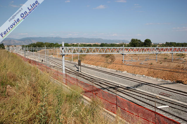 Tra La Rustica e Salone la linea AV si distacca dalla linea tradizionale. A destra nell'immagine i due binari per Napoli che confluiscono nel tracciato storico. (Foto David Campione, 3 luglio 2005)