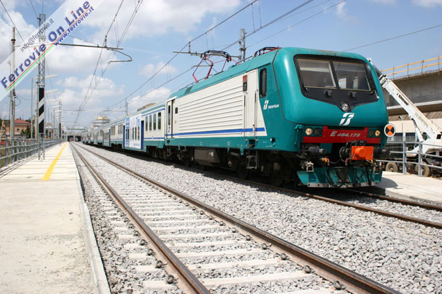 Il Regionale 7512 per Tivoli in sosta per servizio viaggiatori nella nuova fermata di Tor Sapienza, qualche giorno dopo l'attivazione del nuovo tracciato. (Foto David Campione, 9 luglio 2005)