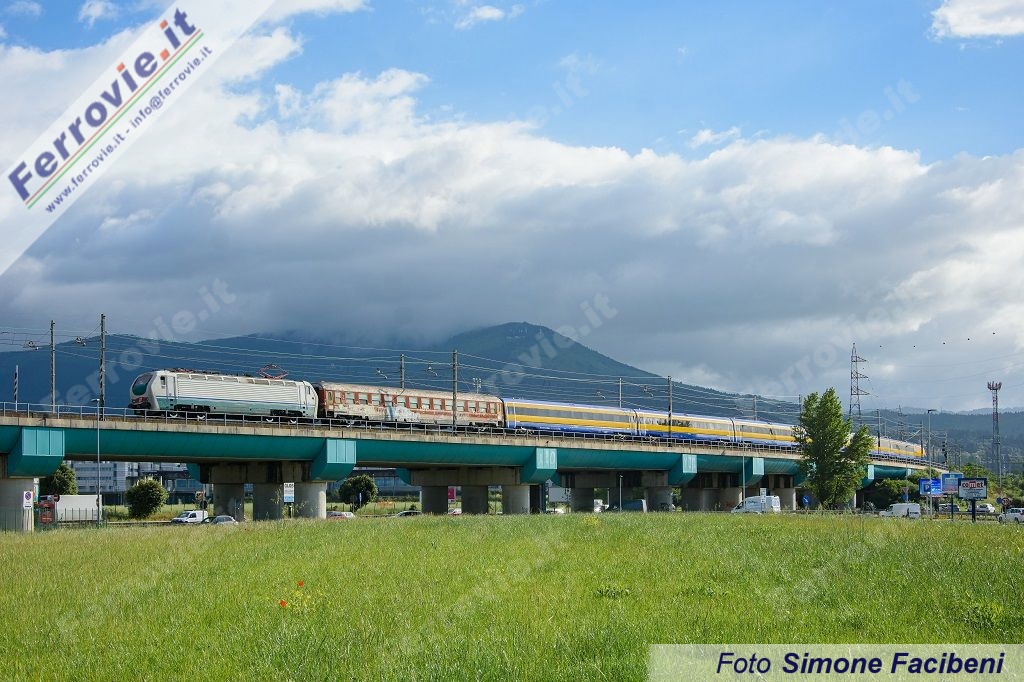 FIRENZE - Prende forma l'ETR.500-Y2 di RFI nella sua nuova versione "Diamante 2.0". Tra lunedì 24 e martedì 25 maggio, sono state infatti trasferite dall'Officina Manutenzione Ciclica ETR di Vicenza all'impianto Italcertifer di Firenze Osmannoro, per le dovute prove di pesatura e sghembatura, sei delle otto carrozze (in dettaglio 90 83 5 299 122-2, 90 83 5 299 209-7, 90 83 5 299 179-2, 90 83 5 299 326-9, 90 83 5 299 266-7 e 90 83 5 299 078-6) e una delle due motrici (la E.404.621) che una volta terminati i lavori di trasformazione e revisione andranno a comporre il "Diamante 2.0".