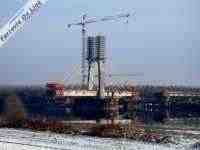 Altra veduta del pilone sud del ponte strallato in costruzione. Il ponte è la parte più importante di un sistema di viadotti esteso per 1343 metri che si rendono necessari per il superamento degli argini nonchè della zona golenale destra. (Foto Pietro de' Castiglioni, novembre 2005)