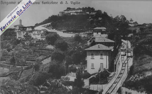 La costruzione della funicolare di San Vigilio iniziò nel 1912 ed entrò in funzione il 27 agosto di quello stesso anno. Il maggior costo della realizzazione determinò difficoltà finanziarie della Società anonima funicolare Bergamo alta - San Vigilio che le impedirono di prendere in carico il servizio che da subito fu affidato all'Azienda municipalizzata di Bergamo.