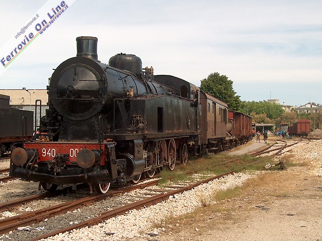 3. La collezione di "Adriavapore" comprende anche la 940.003, in attesa di restauro operativo, il bagagliaio a due assi DI 92.025, alcuni carri merci, che si spera in futuro di poter impiegare per l'allestimento di treni fotografici, e la D.341.2027 (che s'intravede dietro i carri), anch'essa in attesa di completamento del ripristino funzionale, iniziato tempo fa ma purtroppo interrotto per cause di forza maggiore. (Foto Jacopo Fioravanti, 4 giugno 2006)