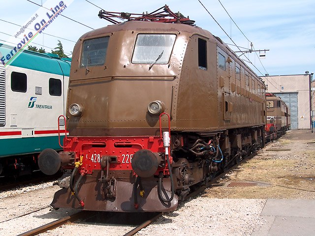 5. Il "pirata" E.428.226, uno dei pezzi forti del Deposito Rotabili Storici di Rimini, non poteva mancare in questa occasione. Questa macchina, imponente e bellissima, riscuote sempre un'attenzione e un'ammirazione almeno pari alla "Regina" del vapore 685.196. (Foto Jacopo Fioravanti, 4 giugno 2006)