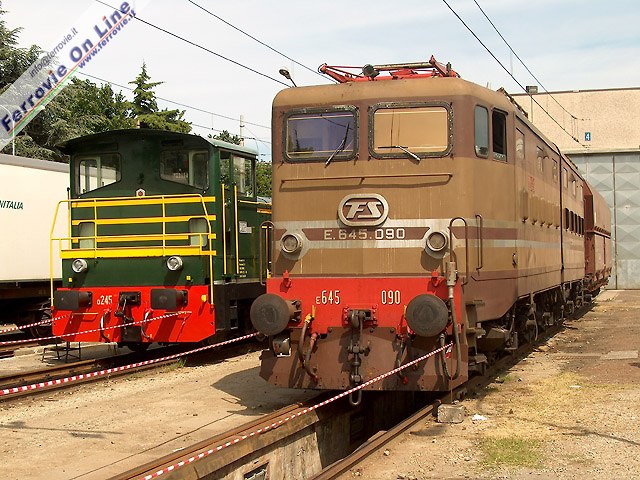 6. Due macchine appositamente distratte dal servizio regolare: E.645.090 (in livrea storica) e 245.0017. (Foto Jacopo Fioravanti, 4 giugno 2006)