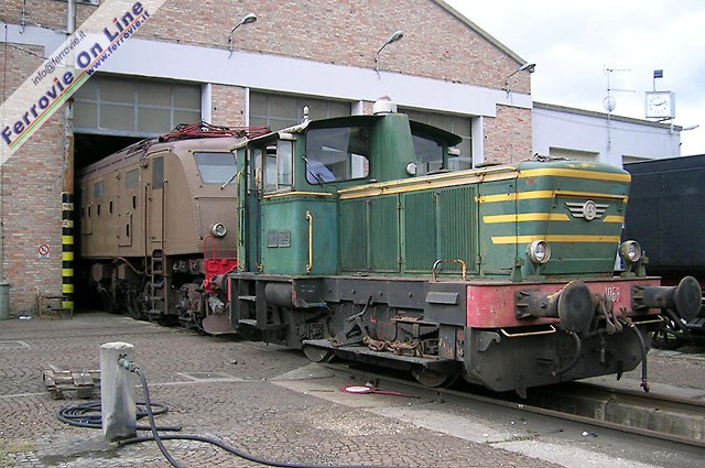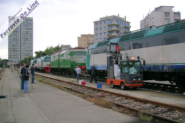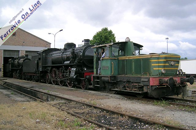 12. Il 214 predispone sul piazzale antistante le rimesse l'E.428.226 e l'E.626.001, protagonista quest'ultima di innumerevoli corsette a beneficio dei visitatori durante la due giorni malatestiana. (Foto Roberto Di Trani, 3 giugno 2006)