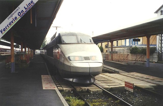 Quasi all'improvviso giunge venerdì, il giorno della partenza, fissata per le 16:05. Il nostro treno, ovviamente diviso in due tronconi, ci attende in stazione sul primo binario. Sul terzo binario c'è invece un convoglio di pellegrini tedeschi, con carrozze Euro-Express, nella livrea molto somigliante a quella rosso fegato delle nostre carrozze tipo "X". Portato a termine il carico dei bagagli, e avuto quindi il "rompete le righe", mi aggiro velocemente per la stazione, cercando qualche treno da immortalare. Su un binario tronco ci sono allineate le onnipresenti BB 8500, le più veloci BB 9300 e finalmente una BB 7200. Fra l'altro finalmente vedo quale locomotore ci trainerà per la primissima parte del viaggio: è proprio una BB 7200! Da qui fino a Tolosa la linea è elettrificata in c.c. a 1500 V, e la bassa tensione la si vede alla partenza dei treni: tutti i locomotori per assorbire l'amperaggio necessario allo spunto, alzano entrambi i pantografi.