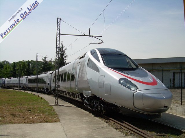 Così si presenteranno i nuovi Pendolino per Trenitalia, che dovrebbero entrare in servizio dalla fine del 2006. Nell'immagine l'elettrotreno ancora in allestimento provvisorio posa per la stampa, prima di lasciare l'Italia alla volta di Velim. (Foto Maurizio Tolini, 5 giugno 2006)