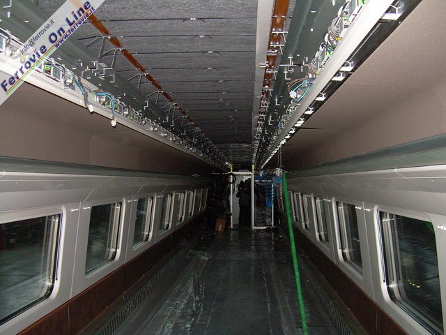 Gli interni di un ETR.610 in allestimento nello stabilimento Alstom di Savigliano. (Foto Maurizio Tolini, 5 giugno 2006)