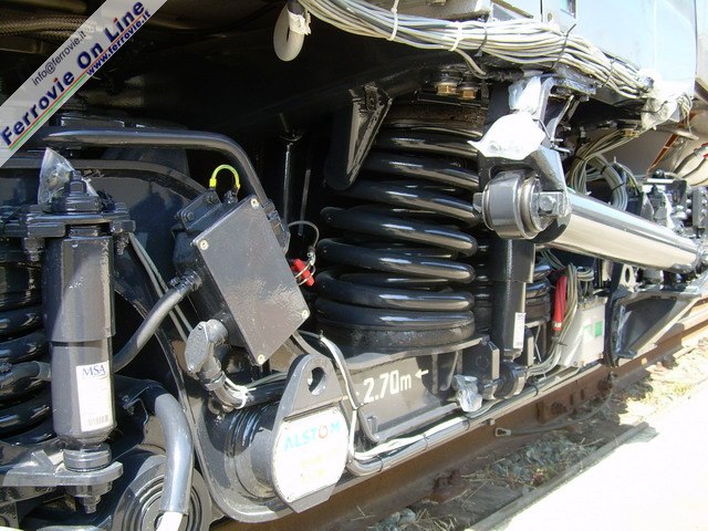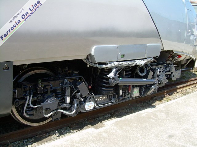 I carrelli del nuovo Pendolino riprendono in linea di massima il modello già in opera su altri elettrotreni della stessa famiglia. (Foto Maurizio Tolini, 5 giugno 2006)