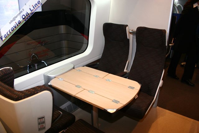 Gli interni del nuovo Pendolino, allestiti su un'apposita maquette dello stesso treno in scala 1:1. (Foto David Campione, 6 novembre 2005)