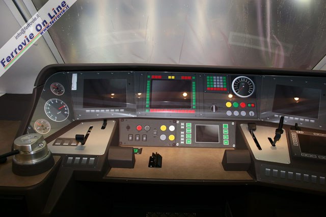 Nel simulacro è stato riprodotto anche la luminosa cabina di guida, con il banco di manovra, qui in esposizione a Milano. (Foto David Campione, 6 novembre 2005)