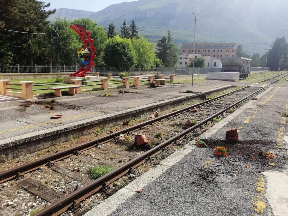 "Ecco come quattro imbecilli possono in un attimo rovinare il lavoro e la cura del bello che da tanto tempo è oggetto di attenzioni alla stazione di Campo di Giove, il gioiello della Ferrovia dei Parchi.