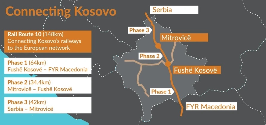Ricostruzione a firma GCF, in Kosovo, anche per la seconda tratta della Rail Route 10, l'arteria ferroviaria centrale che collega il Paese con la Serbia a Nord e, a Sud, con la Macedonia. Nei giorni scorsi Infrakos ha ufficialmente comunicato alla Direzione del Gruppo Rossi l'aggiudicazione del secondo lotto: un contratto del valore di 47,9 milioni di euro per la ricostruzione della sezione ferroviaria compresa tra Fushë Kosovë e Mitrovice.