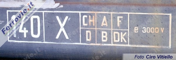 In alto troviamo un rettangolo giallo contenente il CCR (Codice Controllo Rotabili), di uso interno alle FS e composto da due caratteri intervallati da due numeri compressi tra 00 e 41, che individuano il veicolo in base alle principali caratteristiche tecniche e di circolazione (classe, velocità, preso frenato, tipo di carrelli, tipo di riscaldamento, ecc.).