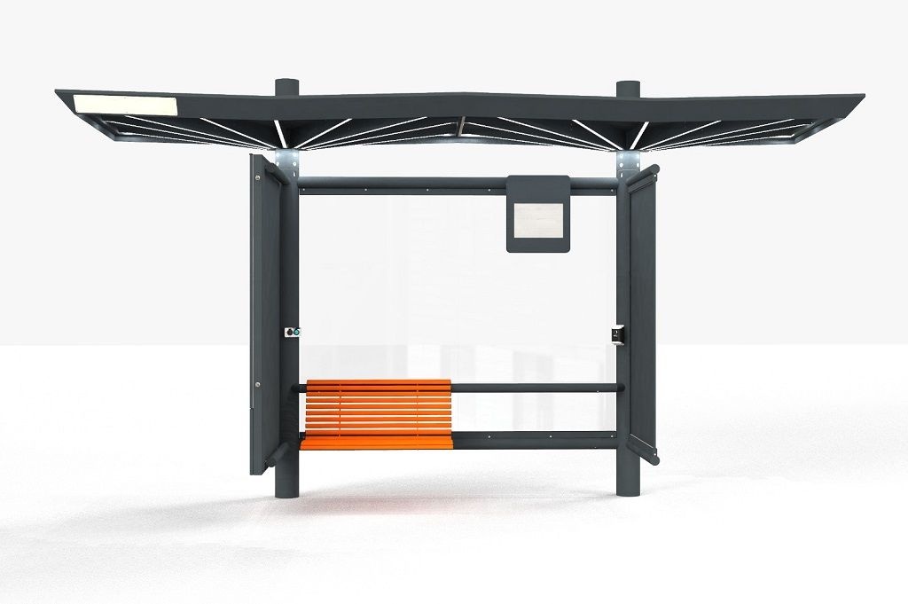 • 40 pensiline smart+ dotate di dispositivi integrati al sistema ITS di Amtab e munite di: