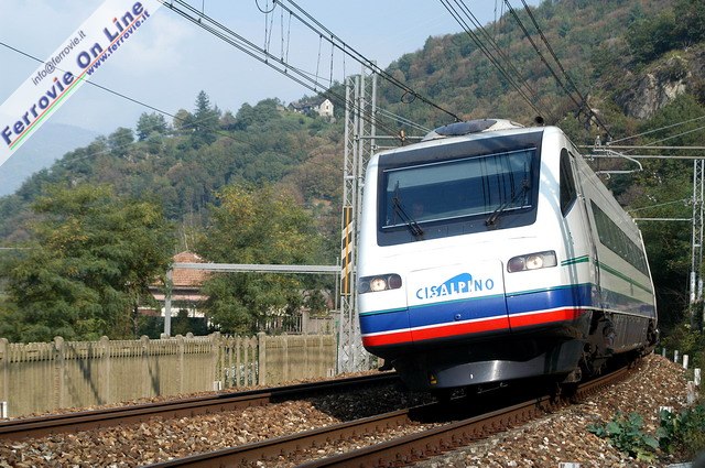 Attualmente la società Cisalpino è controllata da una joint venture formata dalle Ferrovie dello Stato e dalle Ferrovie Federali Svizzere. In 10 anni di attività Cisalpino ha gradualmente preso in gestione tutti i collegamenti diurni Italia - Svizzera collegando Milano, Firenze, Livorno e Venezia con Zurigo, Basilea, Ginevra e Stoccarda (D), abbassando di molto i tempi di percorrenza tra i due paesi. Nella foto l'ETR.470 sfoggia il suo pendolamento, in corsa sui binari della Val d'Ossola. (Foto Tg-trains.com, 13 ottobre 2005)