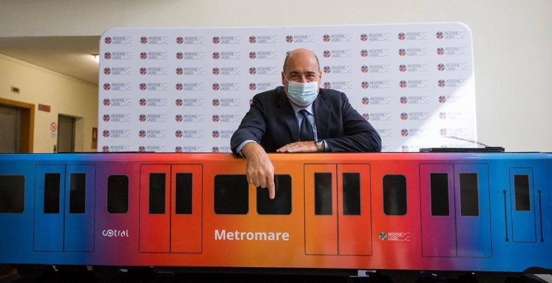 Il Presidente della Regione Lazio, Nicola Zingaretti, insieme all'Assessore alla Mobilità, Mauro Alessandri, alla Presidente di Cotral, Amalia Colaceci, e all'Amministratore Unico di Astral, Antonio Mallamo, ha presentato il progetto della nuova linea ferroviaria Metromare.