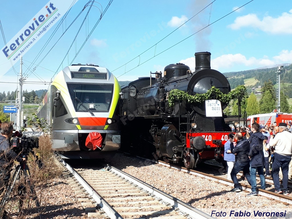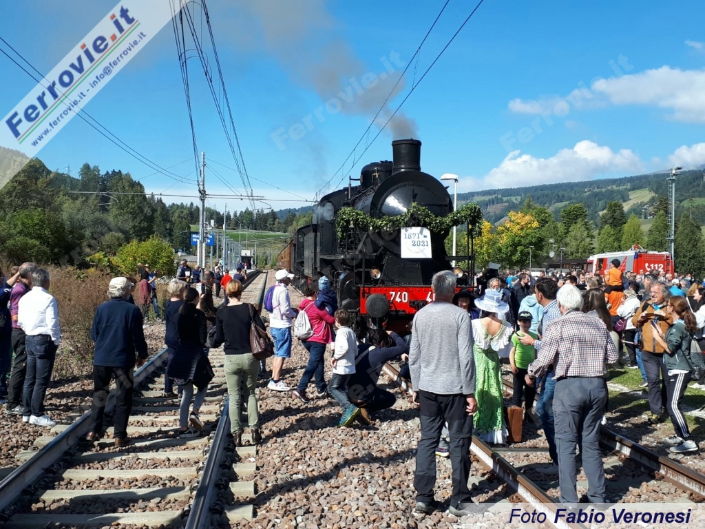 Regine della giornata le locomotive a vapore 740.409 (fresca di revisione, vedi Brevi ferroviarie del 28/09/2021) e la 740.278 con cinque carrozze Centoporte e un bagagliaio, che hanno viaggiato lungo la Val Pusteria ospitando a bordo stampa e autorità.