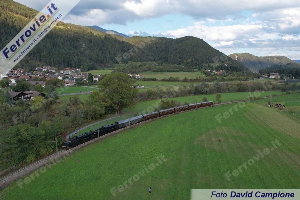 Il sole del mattino sta inesorabilmente lasciando il posto alle nuvole, che si fanno sempre più fitte avvicinandosi alla destinazione finale. Le due 740 affrontano agevolmente i quasi 65 chilometri che separano San Candido a Fortezza, attese - come per il viaggio di andata - da decine e decine di appassionati appostati lungo linea con fotocamere, videocamere e droni per immortalare il passaggio di un convoglio a vapore che riporta per poche ore questa storica linea ai fasti del passato, quando la trazione a vapore dominava nell'intera valle.