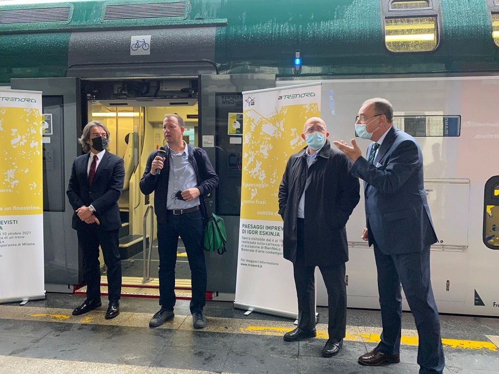 Installazioni fatte di parole, colori e immagini che dalla carrozza di un convoglio durante il viaggio accompagnano i passeggeri in un altro viaggio, di sensazioni ed esperienze: l'arte sale su un treno Trenord in occasione di BienNoLo, biennale d'arte contemporanea di Milano ideata da Carlo Vanoni e curata dall'Associazione ArtCityLab che si tiene fino al 10 ottobre. A bordo del convoglio, l'installazione ambientale "Paesaggi imprevisti" dell'artista croato Igor Eškinja attraverserà il Passante ferroviario e raggiungerà le stazioni Saronno, Como, Asso e Lodi.