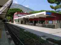 Fabbricato viaggiatori di Maratea, cittadina della provincia di Potenza. Visibile nell'immagine il 1° binario che in questo impianto è di precedenza. (Foto David Campione, 10 agosto 2003)