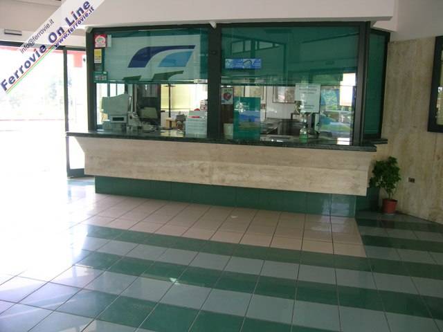 Poche stazioni in Italia sono curate, pulite ed accoglienti come Maratea. Nella foto l'atrio con la biglietteria presenziata ad orari prestabiliti. L'impianto dispone anche di un piccolo bar. (Foto David Campione, 10 agosto 2003)