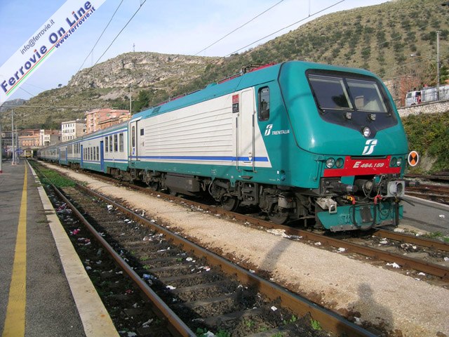 Le moderne E.464 sono diventate una presenza abituale nell'ambito ferroviario di Tivoli, spodestando E.636, E.646 ed E.656, macchine molto diffuse tra Roma e Sulmona alla testa di treni di ogni ordine. (Foto David Campione, 5 dicembre 2003)