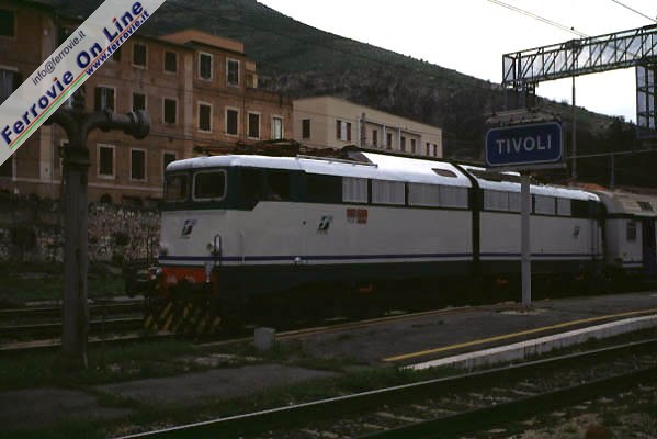 In passato la stazione di Tivoli vedeva transitare i Rapidi Roma - Pescara e vv. che non effettuavano fermata nella città della Villa d'Este. L'immagine ricavata dal video "Pescara-Roma IR 2343" illustra il transito di uno di questi rapidi affidato ad un ETR.220 e ripreso mentre sbuca dalla breve galleria di Tivoli. (Fotogramma Alessandro Manfredi, 8 luglio 1994)