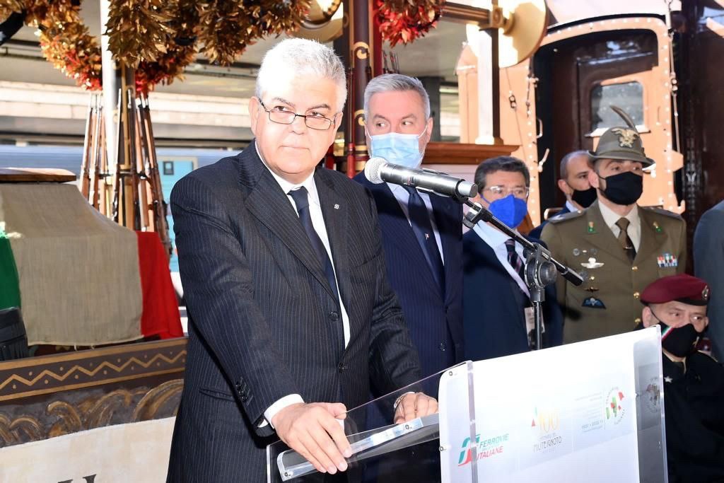 Quello per l'unità nazionale, ha dichiarato l'AD Ferraris nel corso della cerimonia di commemorazione, «fu un impegno straordinario di uomini e mezzi ed è per questo che la commemorazione e il riproporre cento anni dopo il viaggio del Milite Ignoto non è solo un atto di estrema potenza evocativa ma un modo di ribadire come Ferrovie dello Stato e la storia d'Italia vanno fianco a fianco». Uno degli obiettivi delle Ferrovie dello Stato Italiane, ha ricordato infatti Ferraris, «è stato sempre quello della riconversione dei territori e della ricomposizione dei legami dell'identità. L'unità d'Italia divenne reale man mano che il Paese reale veniva collegato. Da quando l'Italia è unita le ferrovie hanno ricoperto sempre un ruolo attivo nelle grandi disgrazie e nei momenti di unità nazionali. Il treno nel suo transito unì tutto il Paese».