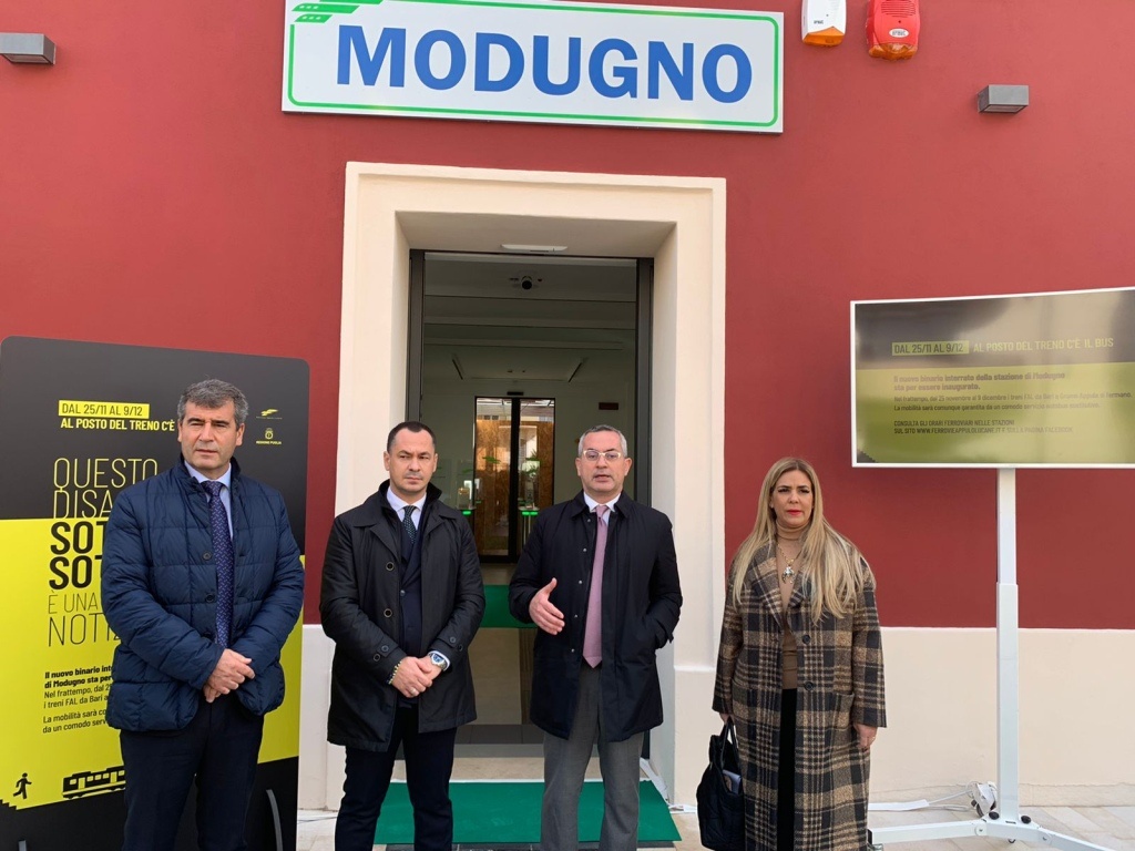 "Quello di oggi - ha detto il Presidente di Ferrovie Appulo Lucane, Rosario Almiento - è un risultato eccezionale, frutto del grande impegno del management aziendale e della grande sensibilità della Regione Puglia e del Comune di Modugno con cui abbiamo lavorato e stiamo lavorando fianco a fianco per migliorare la mobilità e qualità della vita dei cittadini. Crediamo che l'interramento dei binari e della stazione, interamente ristrutturata con standard moderni e sostenibili, la riqualificazione urbanistica totale di tutta l'area circostante con l'aggiunta di servizi destinati anche alle famiglie, siano obiettivi a cui teniamo tutti. A fronte di questo purtroppo ci sarà qualche giorno di disagio per gli utenti che dal 25 novembre al 9 dicembre dovranno utilizzare gli autobus invece che i treni. Per agevolarli il più possibile abbiamo messo in atto una capillare campagna di informazione e comunicazione sul nostro sito internet, sulla nostra pagina Facebook e su molti siti web locali. Per la prima volta, sui manifesti e sui volantini distribuiti nelle stazioni e a bordo dei treni, abbiamo previsto la possibilità di scaricare gli orari scansionando un QR code. Stiamo facendo del nostro meglio, insieme con le Istituzioni e gli Enti locali che ci sostengono e credono in noi, per fare in modo che Fal garantisca non solo la mobilità dei cittadini ma favorisca anche la modernizzazione degli standard di TPL dal punto di vista dell'accessibilità, della sostenibilità ambientale e della vivibilità dei centri urbani serviti".