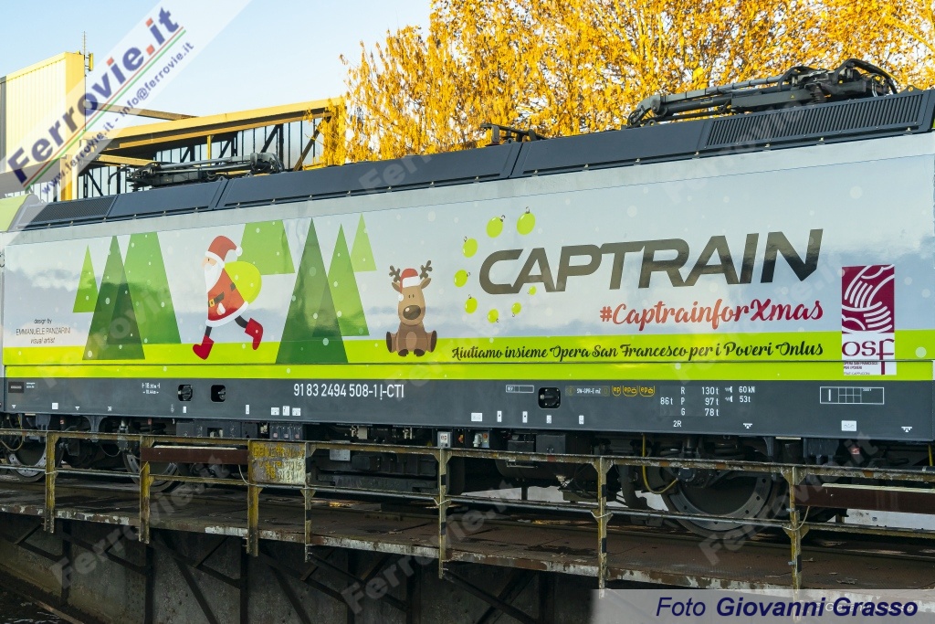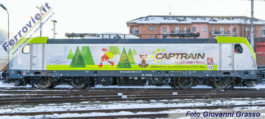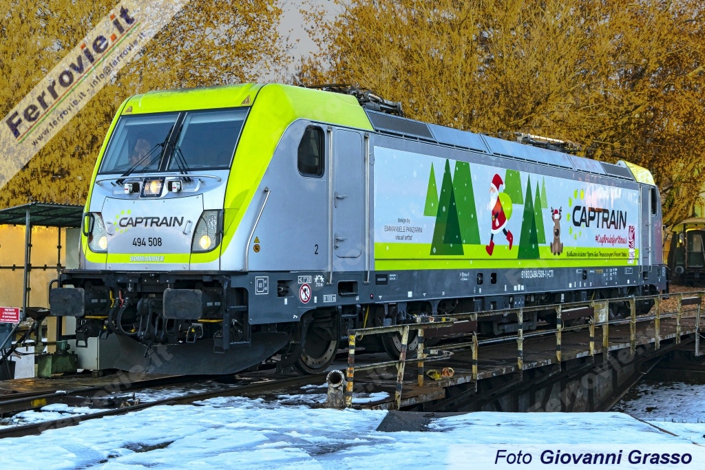 Dalle officine Tiber.Co di Asti lunedì 13 dicembre è uscita la locomotiva E 494.508 di Captrain Italia decorata con una nuova livrea natalizia. La simpatica iniziativa della compagnia di trasporto merci è finalizzata a veicolare un messaggio di speranza per il Natale 2021: è il momento di rialzarsi per tornare a sognare e a crescere, dopo un biennio difficile per il settore e per l'Italia intera.