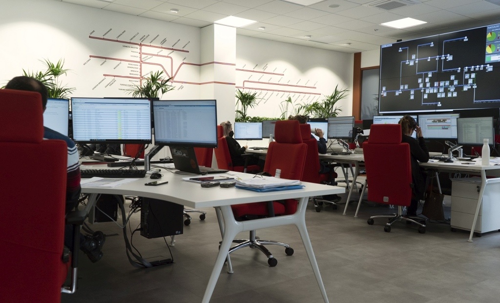 Il cuore pulsante del nuovo Head Quarter è la Sala Operativa, progettata per essere visibile dall'esterno grazie alle vetrate trasparenti e funzionale al lavoro quotidiano. La Sala Operativa è suddivisa in due aree: un'area operativa studiata per garantire una buona visibilità del videowall da tutte le postazioni e fornita delle attrezzature necessarie al monitoraggio costante ed h24 della circolazione ferroviaria, e un'area risto/relax per permettere di gestire lo stress nei momenti di gestione straordinaria, senza lasciare la postazione.