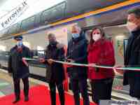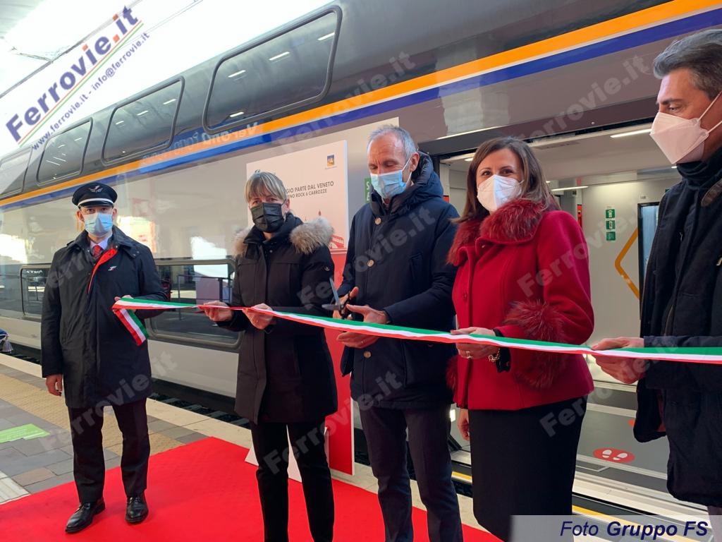 Alla cerimonia, svolta oggi al binario 1 della stazione di Verona Porta Nuova, sono intervenute Sabrina De Filippis, Direttore Business Regionale Trenitalia ed Elisa De Berti, Vicepresidente con delega a Infrastrutture e Trasporti Regione Veneto. Per Trenitalia era presente anche Tiziano Baggio, Direttore Regionale Veneto.