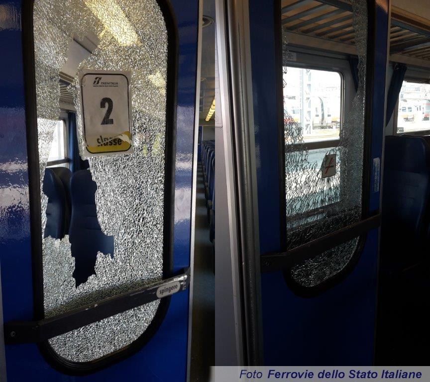 Trenitalia - che sporgerà denuncia - cercherà di completare nel più breve tempo possibile le operazioni di sostituzione dei vetri - da effettuare in officina - per evitare cancellazioni di corse successive.