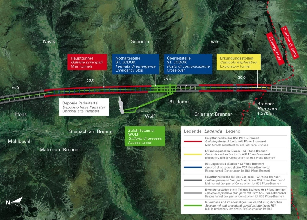 Oltre al lotto di costruzione Gola del Sill - Pfons (H41), anche Pfons - Brennero (H53) si classifica come una tra le tratte più grandi nell'area di progetto austriaca.